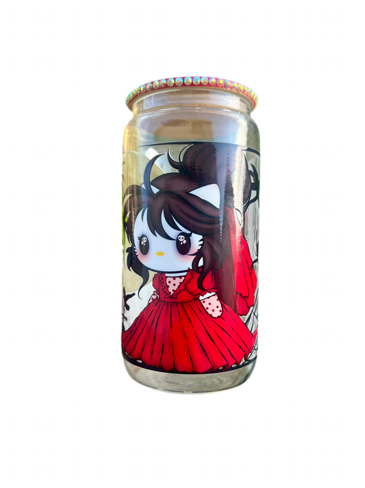 16oz Beetlejuice Hello Kitty Glass Tumbler
